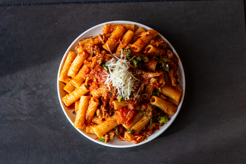 Braised Pork Ragu, Pomodoro, Slow Roasted Tomatoes, Broccolini, Parmesan